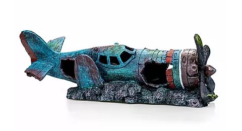 This Resin Plane is designed to look like a crash or wreck. Measurements are: 36 x 17 x 12.5cm. Perfect for fish or turtles. Or adding some character to any other animal home.