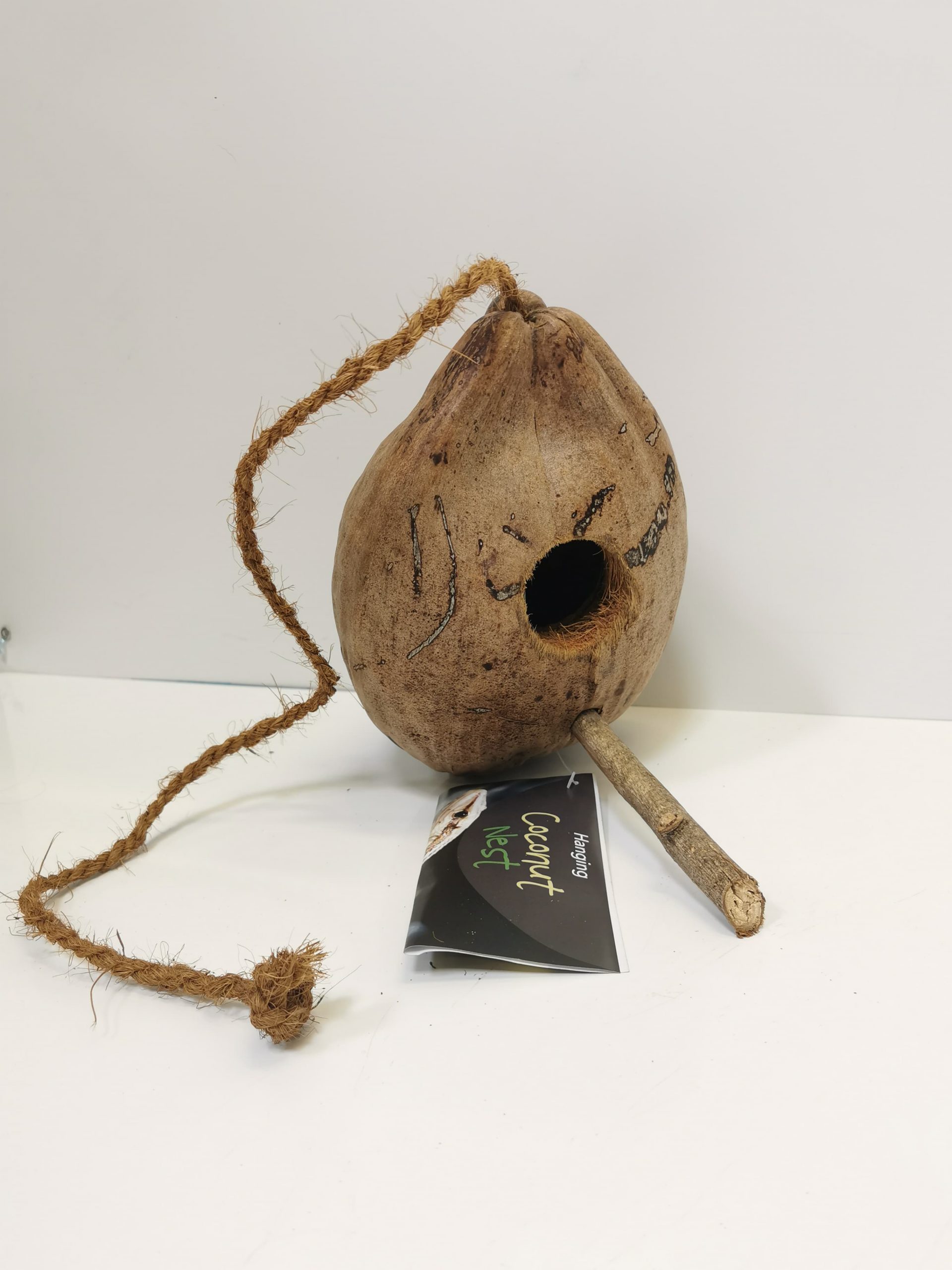 Made from a whole coconut, hollowed out to create a nest for many species.