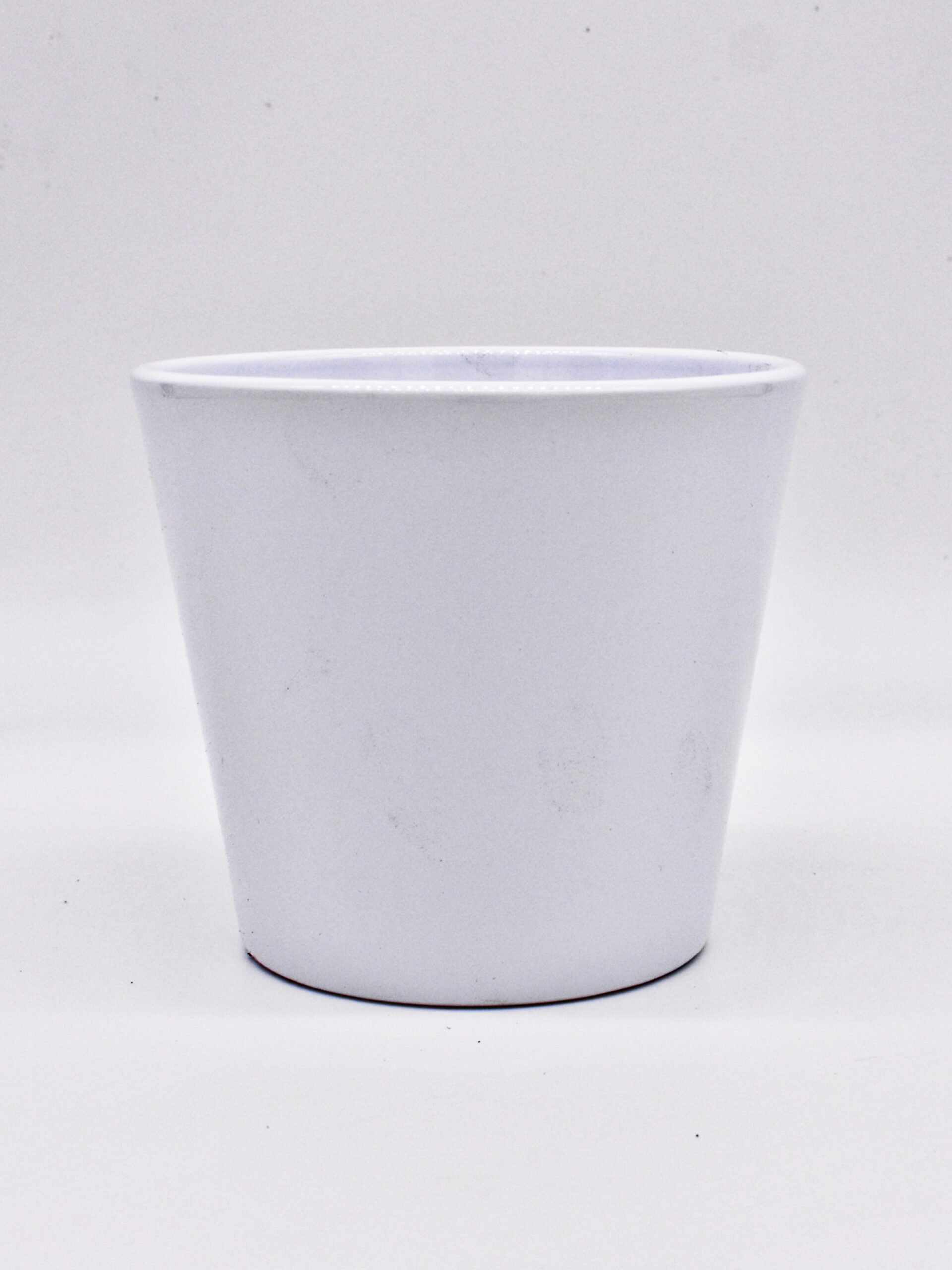 This stunning White Ceramic Pot is 13.5cm diameter (12cm internal diameter) & 12cm height